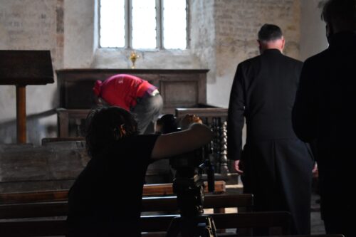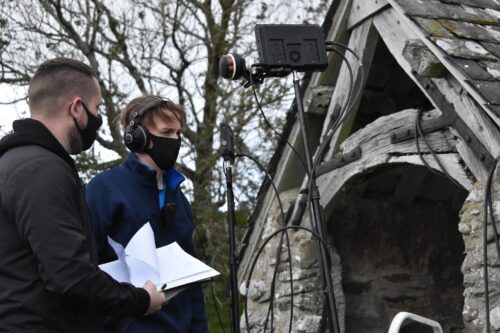 Filming took place on location in North Wales over four days with a small crew due to restrictions imposed by lockdown rules and limits on gatherings of people at the time. We faced many challenges during filming, particularly at the church, which was remote, had no electricity, gas, or running water, and was accessed via a steep single-track road. I also had to direct the majority of the scenes at the location via a monitor. My favourite moment on set was the early 6 AM shoot at a local sheep field, where we captured a scene at sunrise. The majority of the film was shot with natural light where possible, which really helped bring more authenticity and texture to the visual style of the film.